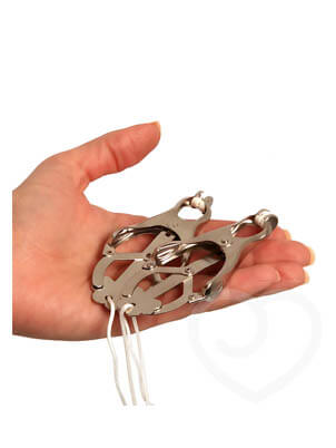 Leave your partner in control of the chain and enjoy as the metallic links also add sensory arousal when against the skin. Softer, cushioned pads are on either side of these attractive clover-style clamps, offering only a small amount of comfort and respite from their tight grip.